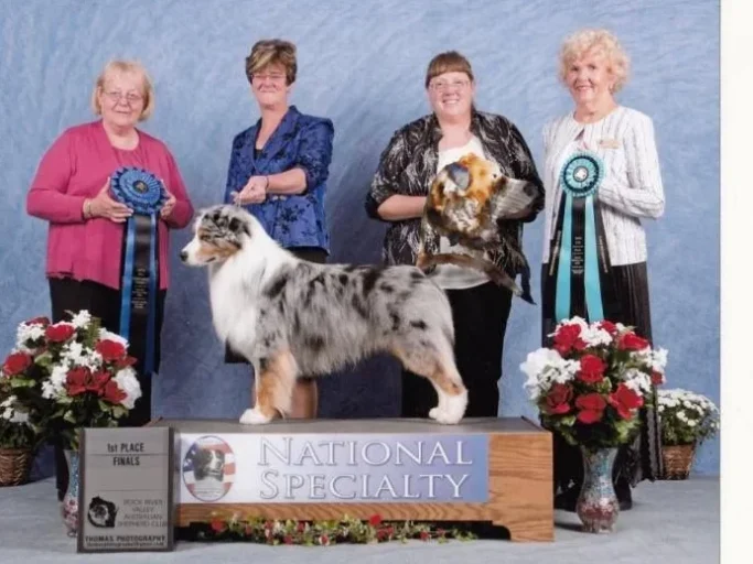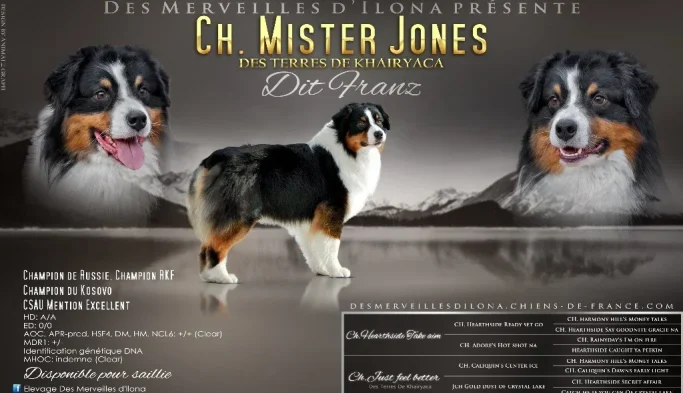 BREF APERCU HISTORIQUE : Alors qu’il existe de nombreuses théories sur l’origine du chien de berger australien, la race, telle que nous la connaissons aujourd’hui, s’est développée exclusivement aux Etats-Unis. Ce nom de berger australien lui fut donné par association avec les bergers d’origine basque arrivés aux Etats-Unis aux 19ème siècle en provenance d’Australie. La popularité du berger australien n’a cessé de croître avec le succès de l’équitation de style western après la deuxième guerre mondiale, que les gens ont appris à connaître par les rodéos, les concours de chevaux, les films et les spectacles télévisés. Leur nature polyvalente et docile a fait d’eux des chiens précieux dans les fermes et les ranches américains. Les éleveurs américains de bestiaux ont continué à développer la race, en entretenant sa polyvalence, sa vive intelligence, son puissant instinct de conduite des troupeaux et son aspect qui attire le regard, tout ce qui, à l’origine, avait forcé leur admiration. Chaque individu est unique pour ce qui est de la couleur de la robe et des marques, mais tous les bergers australiens font preuve d’un dévouement inégalé à leur famille. Leurs nombreuses qualités sont la garantie de la durée de la popularité de ces chiens. FCI-St. N° 342 / 05. 06. 2009